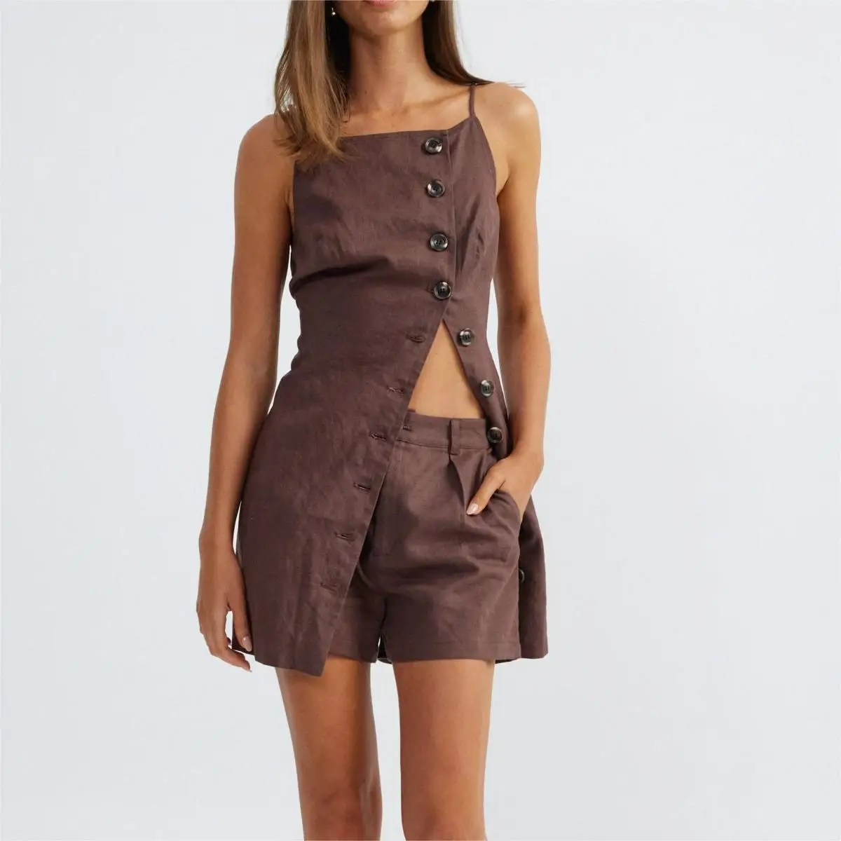 Hot Selling Summer Solid Cotton and Linen Sets Fashion Ladies Outfit 2 Piece Set Pants Summer Women Casual Women Sets